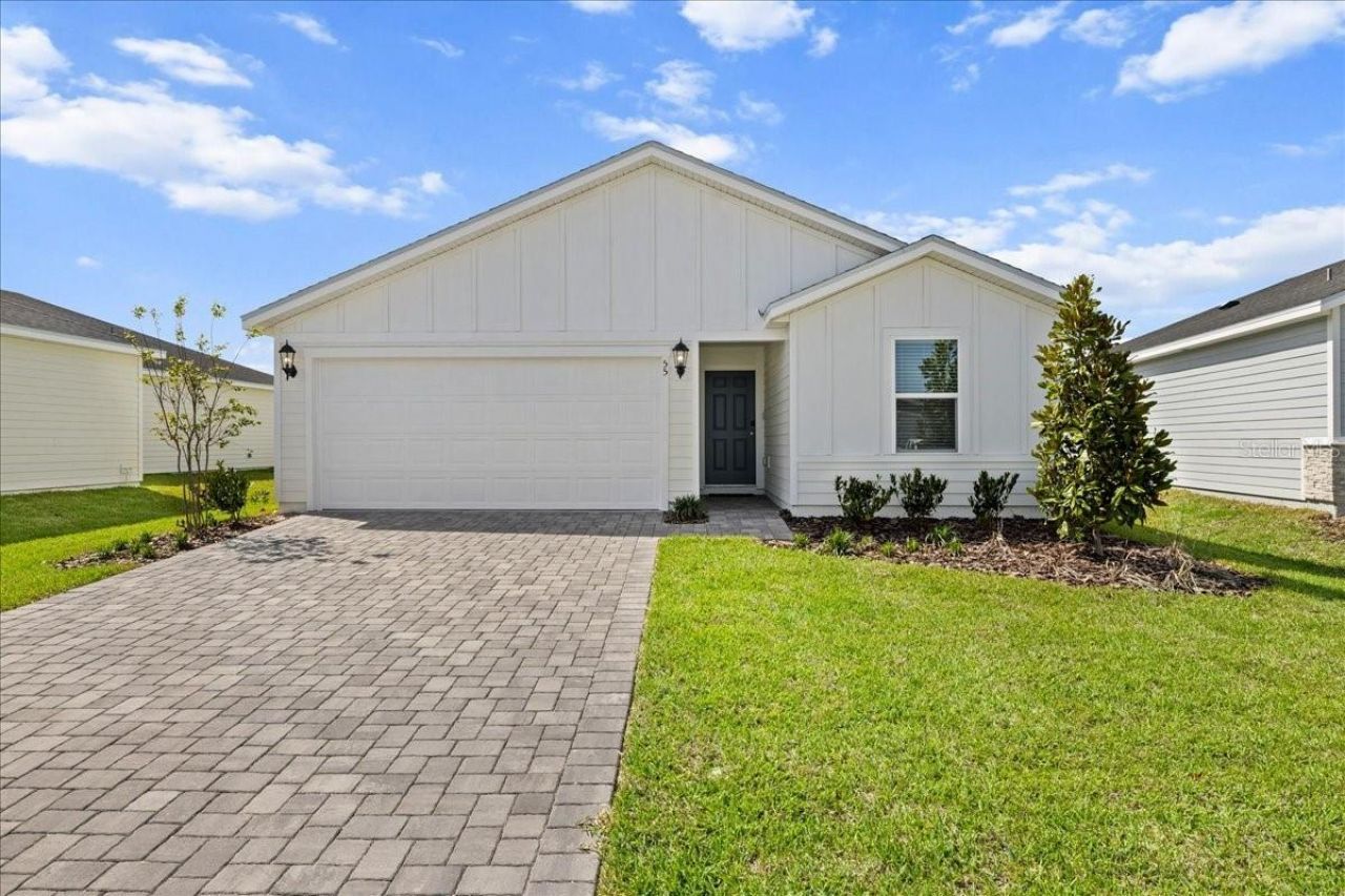 Located just 3 miles from Flagler Beach, this beautifully designed new construction home at 55 Ararat Dr offers the perfect blend of coastal lifestyle, modern comfort, and thoughtful functionality. Enjoy close proximity to local dining, shopping, and entertainment, along with community amenities including a cabana-style pool, pickleball courts, playground, and direct access to scenic walking and biking trails.Inside, the home features a bright and cohesive white finish palette with tile flooring throughout all main living areas, creating a clean, modern look with easy maintenance. The well-appointed kitchen includes all appliances, and the home is complete with installed privacy blinds for added convenience.Designed with flexibility in mind, the floorplan includes a private in-law suite, ideal for multi-generational living or guests. A spacious laundry room with washer and dryer adds to the home's functionality.Built for efficiency and comfort, this property includes spray foam insulation, helping maintain consistent indoor temperatures and energy savings.Step outside to a covered back patio and enjoy a partially fenced yard, along with upgraded paver finishes on the driveway and patio, enhancing both curb appeal and outdoor living.