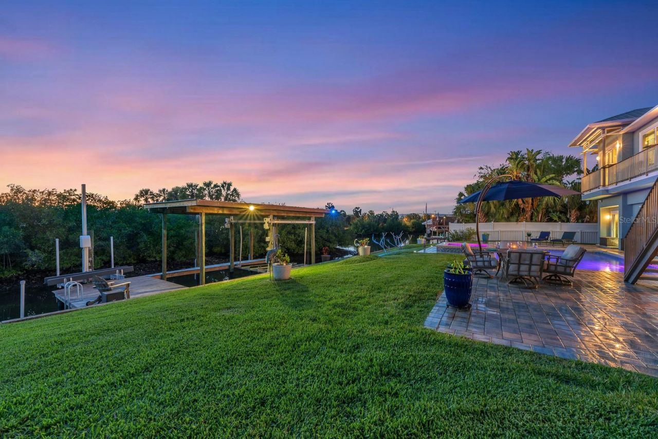 Tucked away on a quiet cul-de-sac in Riverview, this stunning custom-built waterfront home delivers exceptional design, modern upgrades, and breathtaking western views of the Alafia River stretching out to Tampa Bay.Positioned on the second level to maximize the scenery, the main living area showcases an open-concept layout with ceramic wood-look tile, coffered ceilings with crown molding, and expansive sliding doors that lead to a balcony overlooking the water. The living room is both inviting and functional, complete with custom built-ins, an electric fireplace, and seamless access to a stylish wet bar featuring a sink, beverage refrigerator, and abundant cabinetry-ideal for entertaining.The kitchen is thoughtfully designed with white cabinetry, Cambria stone countertops, a large island with seating, and a spacious walk-in pantry. Premium appliances include a Sub-Zero refrigerator, built-in wall oven and microwave, and an induction cooktop, offering both performance and efficiency. Just steps away, the formal dining area provides the perfect setting for gatherings.The split-bedroom floor plan ensures privacy, with the primary suite situated on one side of the home. This serene retreat features a multi-tray ceiling with crown molding, private access to a screened balcony, and an en-suite bathroom offering dual sinks, extensive cabinetry, and a walk-in shower with multiple shower heads. Dual walk-in closets provide generous storage. Bedrooms two and three are located on the opposite side, both equipped with ceiling fans and sharing a well-appointed bathroom with dual sinks and a tub/shower combination with a Jacuzzi-style tub.Outdoor living is elevated with a solar-heated, saltwater pool and hot tub, complete with a water feature for added ambiance. A rooftop patio offers panoramic views of the Alafia River and Tampa Bay, creating a one-of-a-kind space to relax or entertain while taking in the surrounding natural beauty.The ground level adds approximately 2,000 square feet of versatile flex space in addition to the two-car garage-perfect for a workshop, home gym, additional living area, or extra vehicle storage, with dual garage door access for convenience.This home is loaded with high-end features and recent updates, including impact-rated double-insulated windows and doors, plantation shutters throughout, central vacuum, integrated generator, tankless water heater, water softener, and a dual-zone HVAC system (replaced December 2025). Bedrooms feature LVP flooring installed in 2024, and the exterior was freshly painted in December 2025. A Marantz/Sonos surround system enhances the living experience, and all Smart TVs, along with the washer and dryer (2022) convey with the sale of the home.Additional highlights include 400-amp electric service and two Tesla chargers, offering modern convenience for electric vehicle owners.For boating enthusiasts, the property is equipped with a private dock (2015), a 9,000 lb boat lift, a refurbished swing arm with a new cover and a floating dock added in 2018-perfect for launching jet skis and kayaks.Offering a rare combination of thoughtful design, premium upgrades, and true waterfront living, this exceptional property captures the best of Florida living in a peaceful yet convenient location.